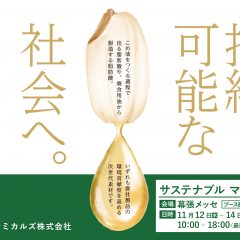 2025/11/05リリース【築野オレオ】第5回サステナブルマテリアル展(SUSMA)初出展! 米ぬか非可食部・廃食用油由来で、あらゆる製品のバイオマス度を向上