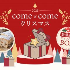 2025/12/10リリースこめ油と米粉のシリーズ「come×come(コメトコメ)」より 冬季限定で「ふんわり米粉のシュトーレンパウンド」 さらには50個限定で「come×come クリスマスボックス2025」が登場!