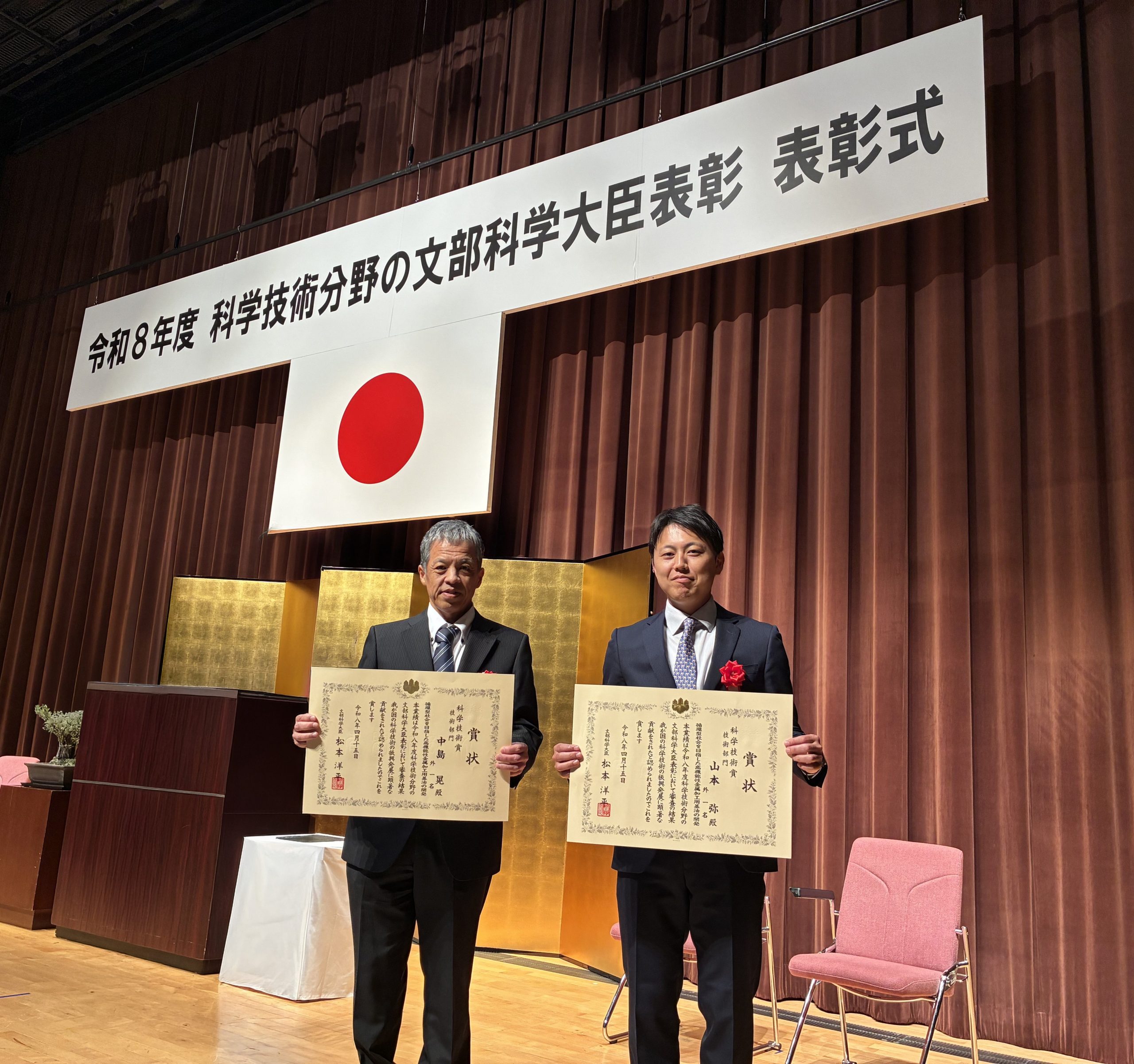 この度は、栄誉ある文部科学大臣表彰をいただき、誠に光栄に存じます。弊社のスローガンであるゼロエミッションを基本とし、同時に厳しい規格をクリアーできましたのも関係各位のサポートのおかげだと深く感謝しております。今回の受賞を励みに、今後はより一層の成果を出せるよう精進いたします。